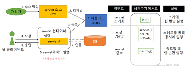 l 웹 브라우저의 요청을 처리할 수 있는 상태의 서블릿 객체를 서블릿 이라고 함