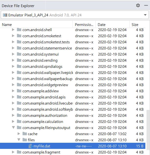 FileOutputStream fos = openFileOutput("myFile.dat",MODE_PRIVATE);