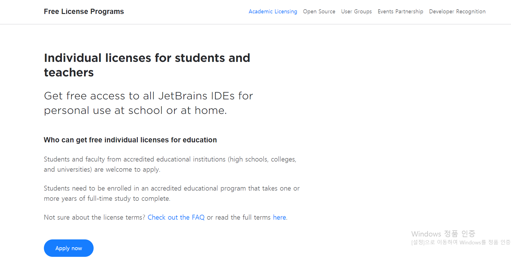 Apply now 신청하기