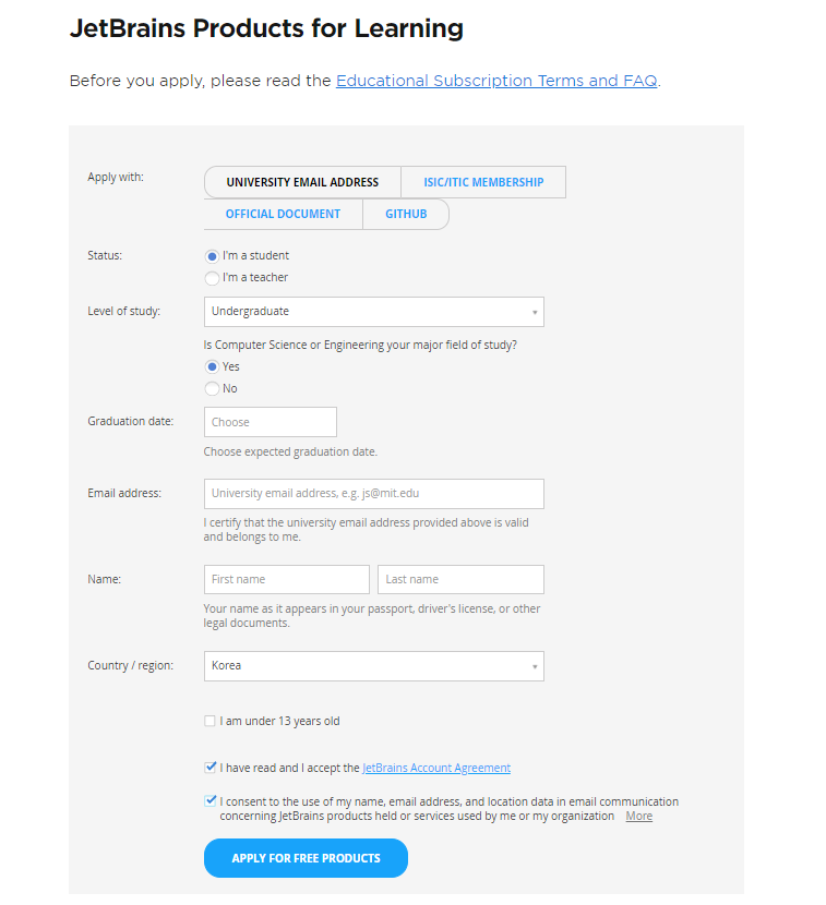 Learn or teach how to code with best-of-industry tools from JetBrains. Free Educational Licenses for JetBrains' tools.