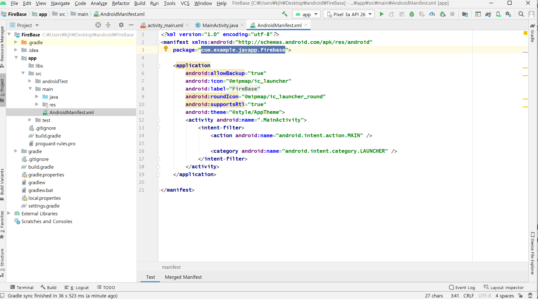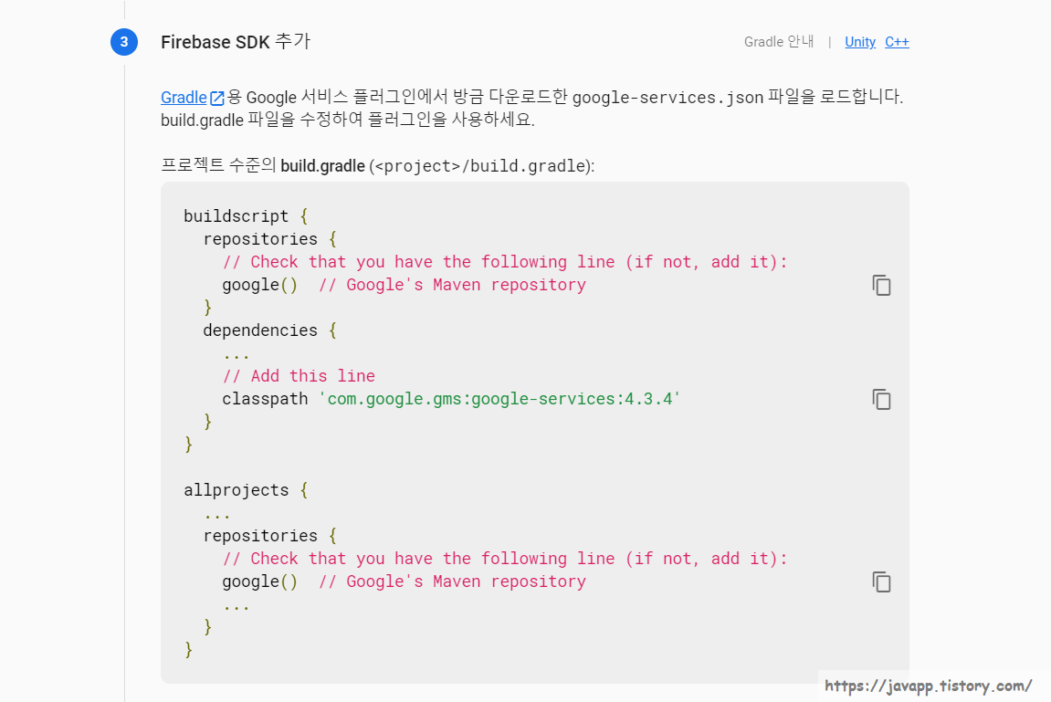 google-services.json 파일을 app 파일에 잘 간직한다.