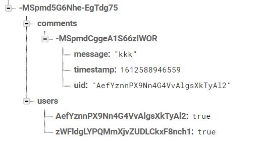 firebaseDatabase.getReference().child("chatrooms").child(chatRoomUid).child("comments").push().setValue(comment).addOnSuccessListener(new OnSuccessListener<Void>() {