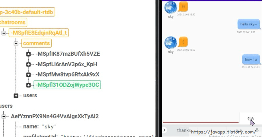 | Android Studio , 채팅 구현하기 | 메시지 읽음 표시 (0) | 2021.02.17 |