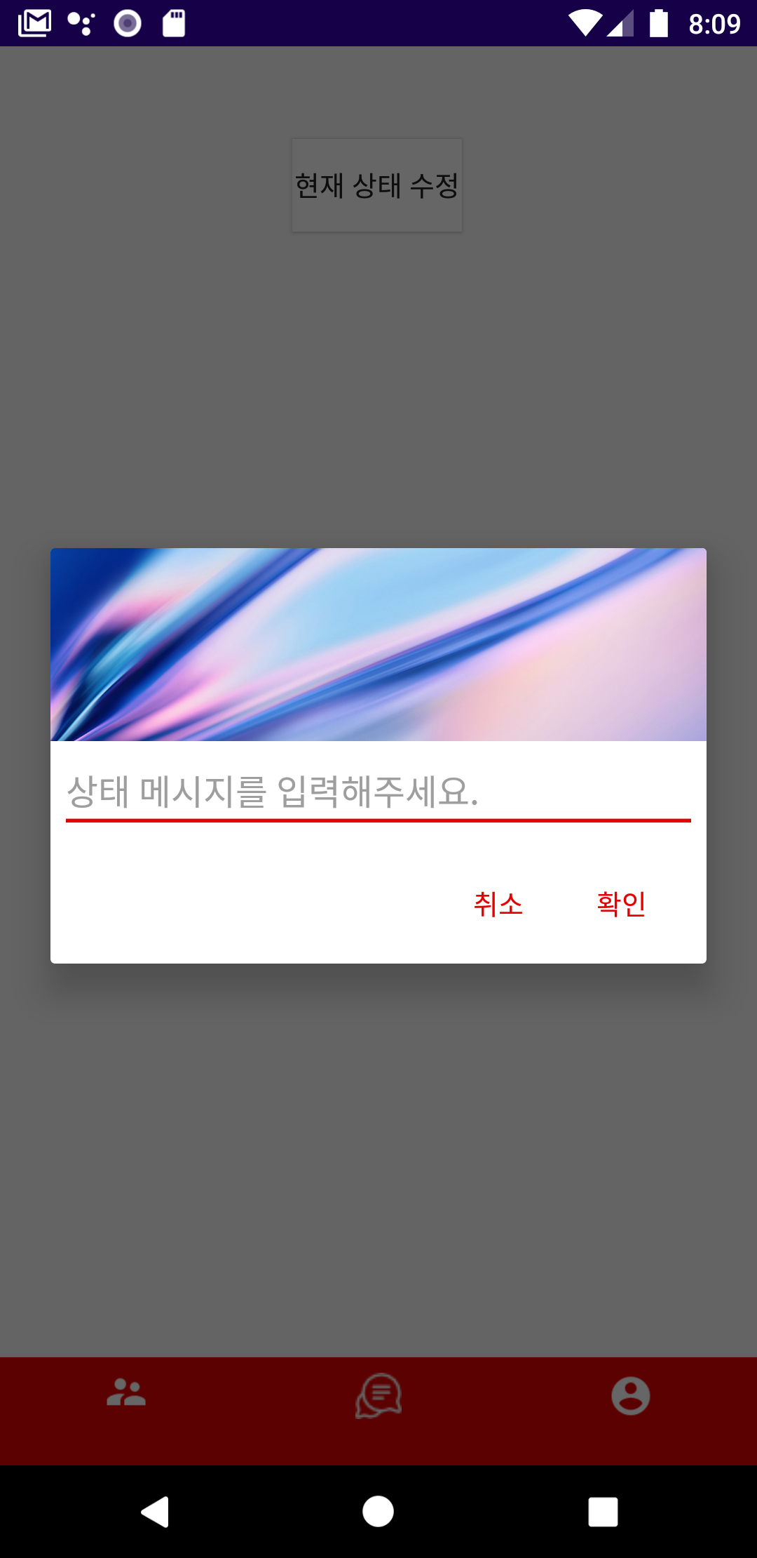 android:hint="상태 메시지를 입력해주세요."