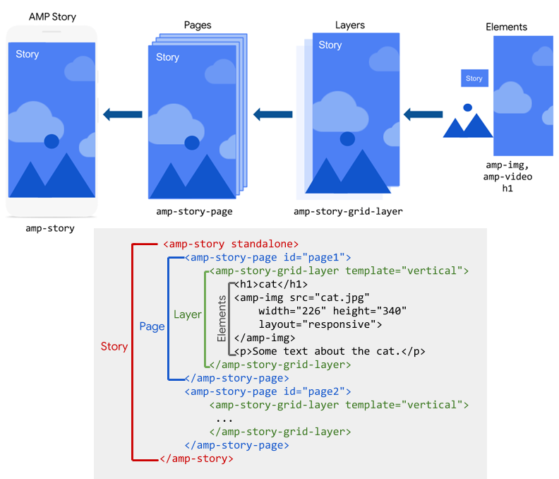 amp stories는 크게 amp-story standalone 이 바깥, amp-story-page 이 안으로 구성되어있으며