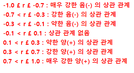 통계에서 30% 이상을 약한 상관관계 , 70% 이상을 강한 상관관계라고 한다.