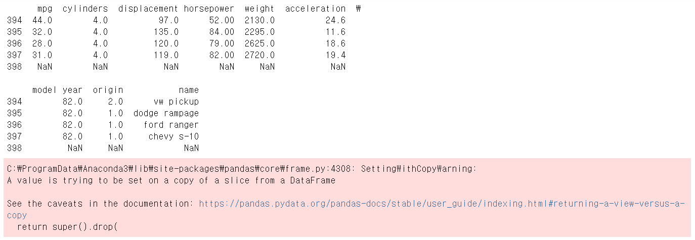 df2가 df의 398 인덱스를 가진 행이 드랍된 결과를 반환