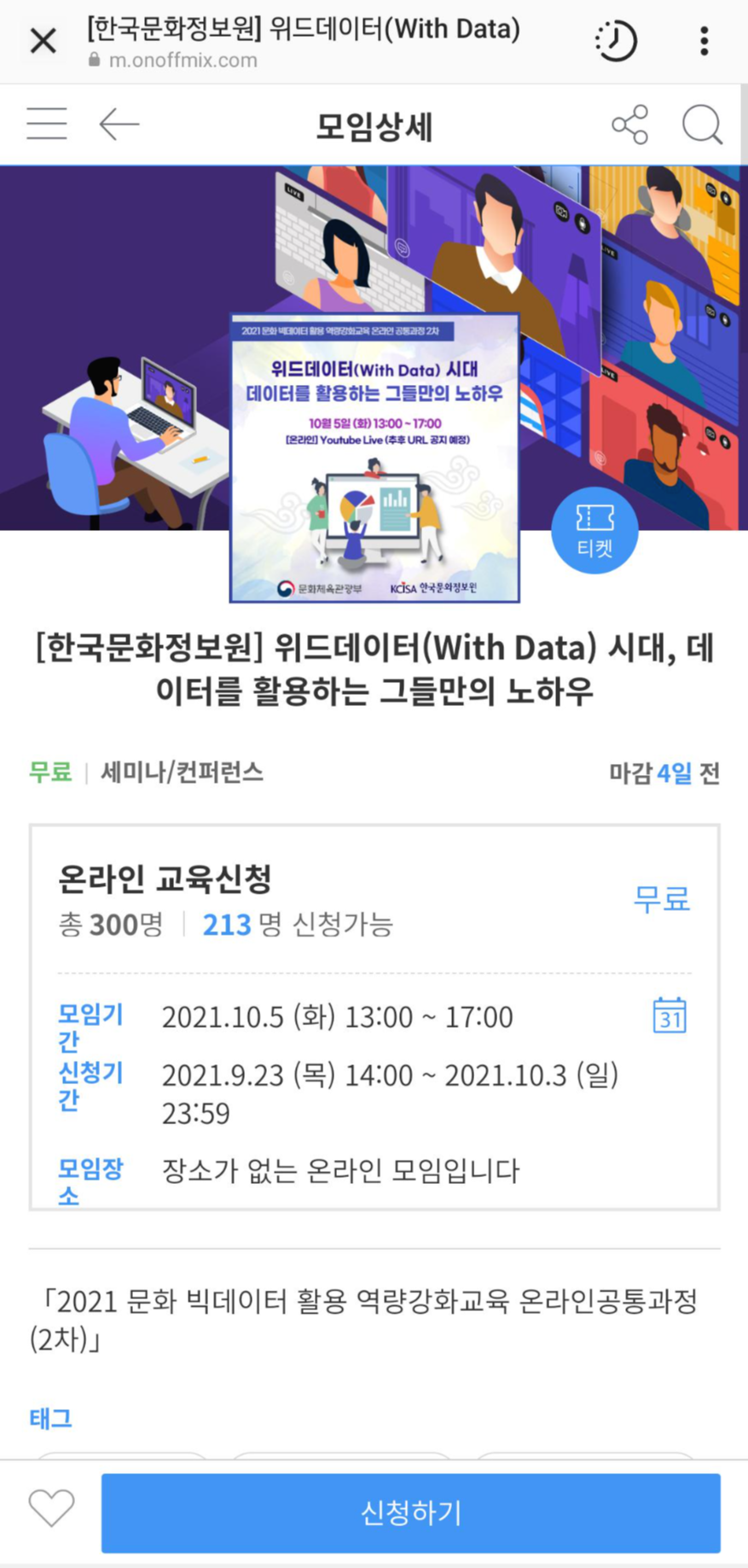 참석 기간 : 21년 10월 5일(화) 13:00 ~ 17: 00