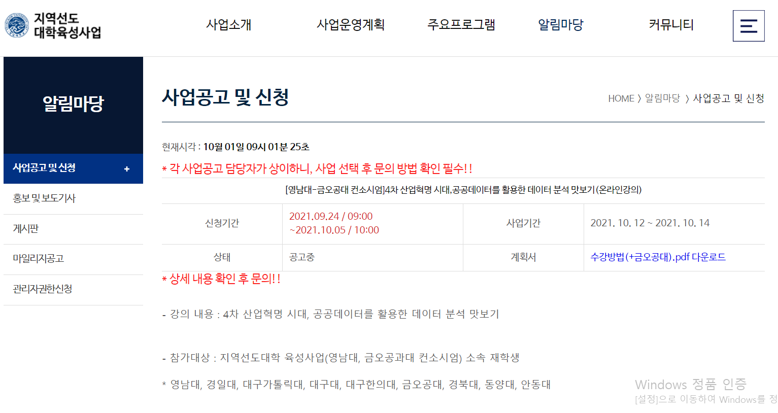 신청기간 : 21년 9월 24일 ~ 21년 10월 05일