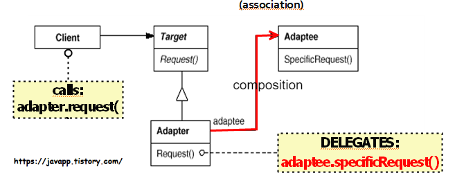 장점) Composition 을 사용하여 adaptee에게 위임하기 때문에 flexible 하다.