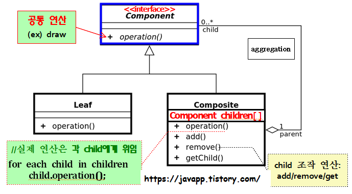 공통 연산 + child 조작 연산을 가지는 interface 정의
