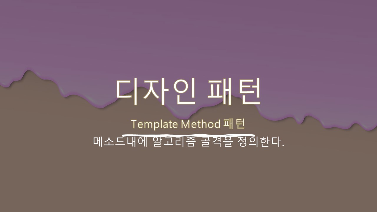 - 알고리즘을 메소드로 정의하고 하위 클래스에서 알고리즘 구조의 변경 없이 알고리즘 재정의