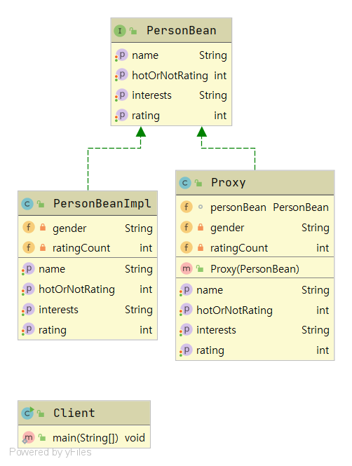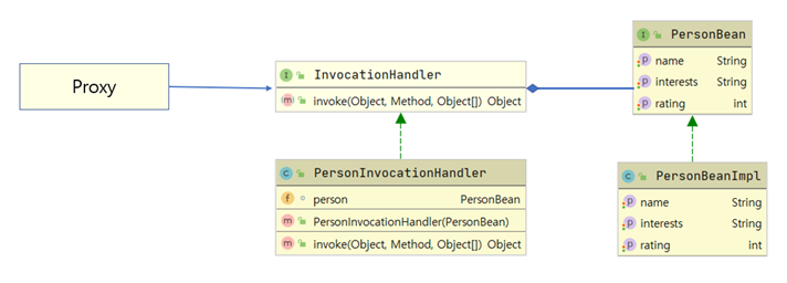 PersonBeanImpl : PersonBean 의 구현 객체 (Heavy object)