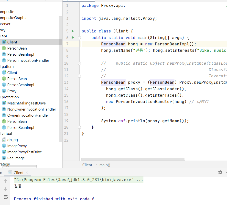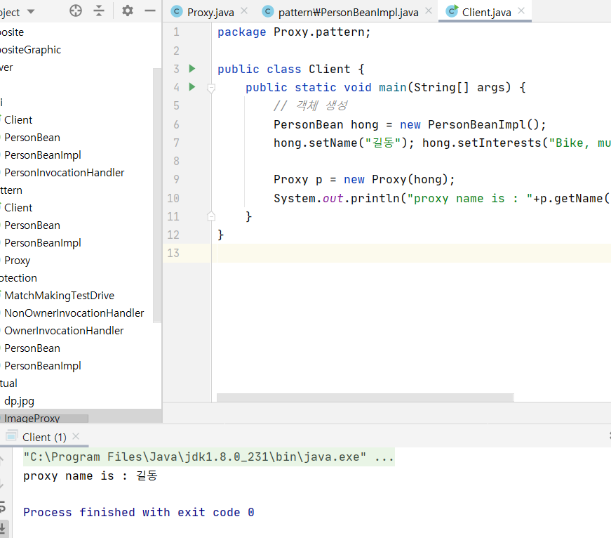 - proxy.getName()), proxy에 의해 메소드가 불려진다.