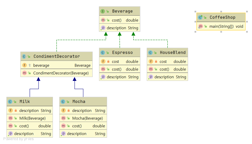 ② 새로운 유형의 음료수가 개발될 때마다 subclass를 계속 추가되어야 함.
