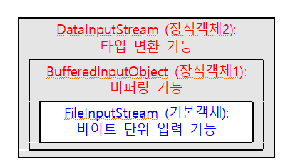 사용자는 connect stream 객체를 filter stream(장식) 객체들로 포장(랩핑)하여