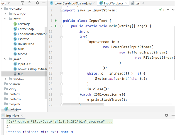 장식 객체는 input stream으로 uppercase에서 lowercase로 변환한다.