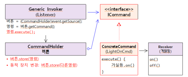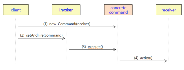 ConcreteCommand : 메소드 호출을 캡슐화 ( 특정수신자.특정메소드() )