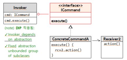 - DIP 적용 설계 : Invoker는 Command의 interface or abstract 에 의존