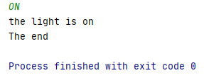 System.out.println("the light is on");