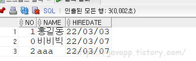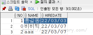 INSERT INTO TEST VALUES(1,'홍길동','2022 03 03');