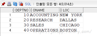 기존 dept 테이블의 값들을 그대로 가져온다.