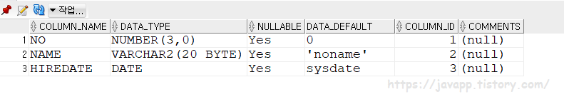 DEFAULT 는 데이터 삽입시 데이터 지정하지 않으면 삽입되는 기본 데이터 값