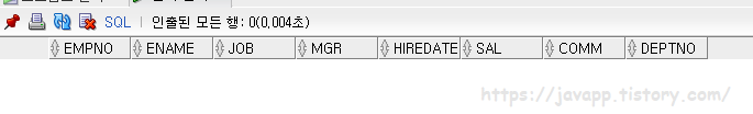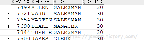 (SELECT empno, ename, JOB, deptno