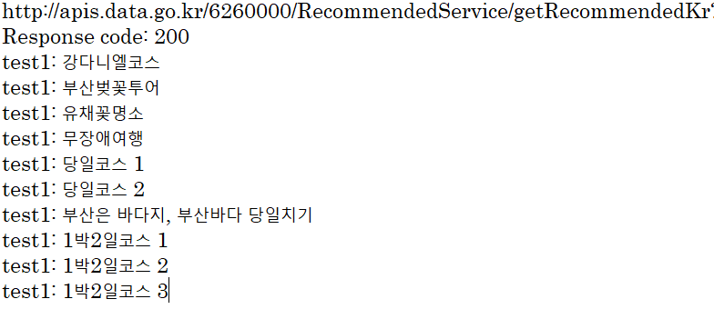 StringBuilder urlBuilder = new StringBuilder("http://apis.data.go.kr/6260000/RecommendedService/getRecommendedKr"); /*URL*/