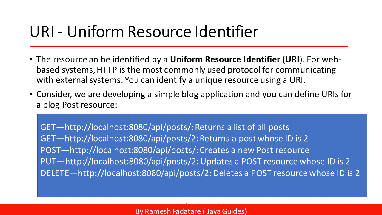 Key points about REST - REpresentational State Transfer: