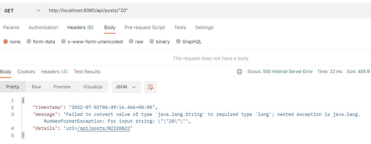 | Spring boot - blog application (REST API) : Validation @Valid (0) | 2022.07.06 |