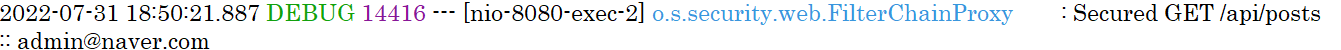 username: org.springframework.security.core.userdetails.User [Username=admin@naver.com, Password=[PROTECTED], Enabled=true, AccountNonExpired=true, credentialsNonExpired=true, AccountNonLocked=true, Granted Authorities=[ROLE_ADMIN]]