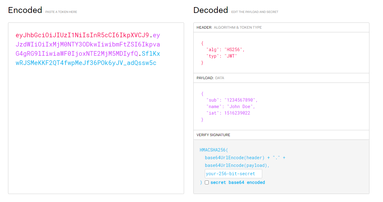 토큰값을 디코드하면 , Header, Payload, Signature 정보를 알 수 있다.