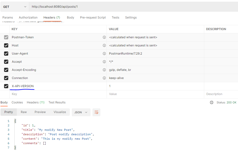 @GetMapping(value= "/api/posts/{id}", headers="X-API-VERSION=1")