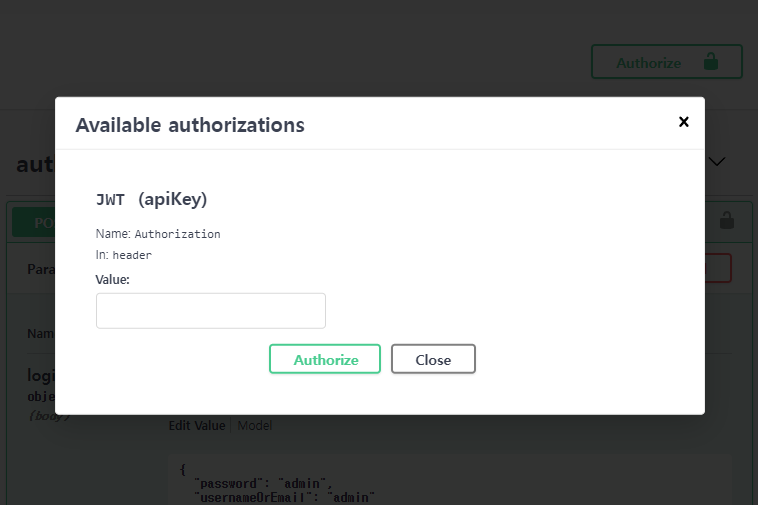 헤더에 곧바로 JWT를 넣어주려면 몇가지 설정을 해야 합니다.
