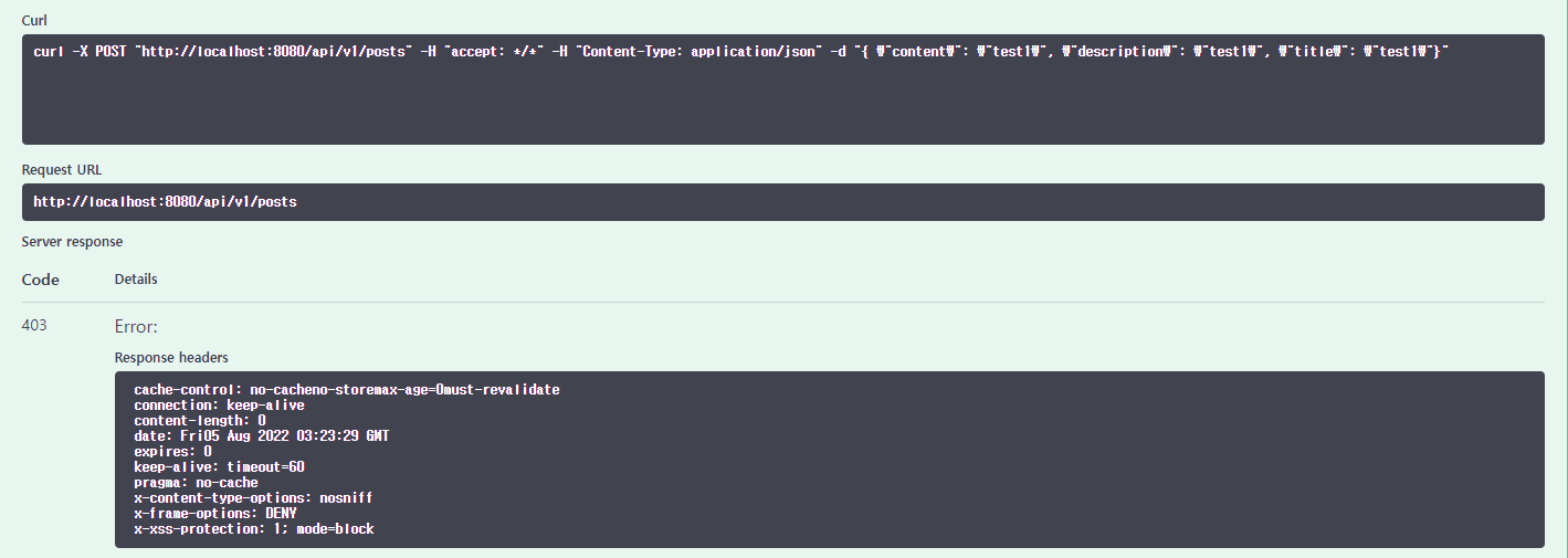 jwt 없이 테스트를 할 경우 페이지로 부터 거부 당하게 돼요.