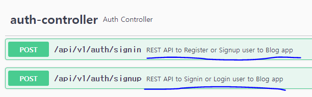 @ApiOperation(value="REST API to Signin or Login user to Blog app")