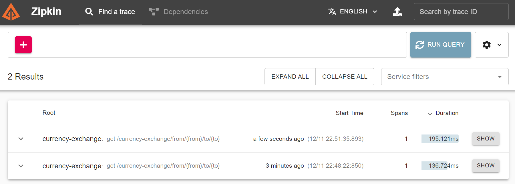 2022-12-11 22:51:35.935 INFO [currency-exchange,efa2a030a5d3cc0b,efa2a030a5d3cc0b] 6876 --- [nio-8000-exec-2] c.j.m.c.c.CurrencyExchangeController : retrieveExchangeValue called with USD to INR