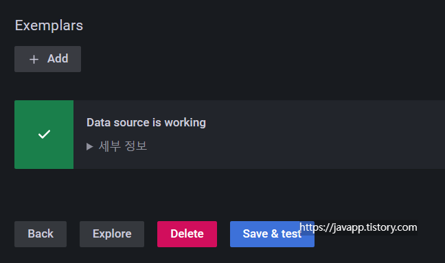 그런 다음 테스트해서 Data source is working이 뜨면 성공!
