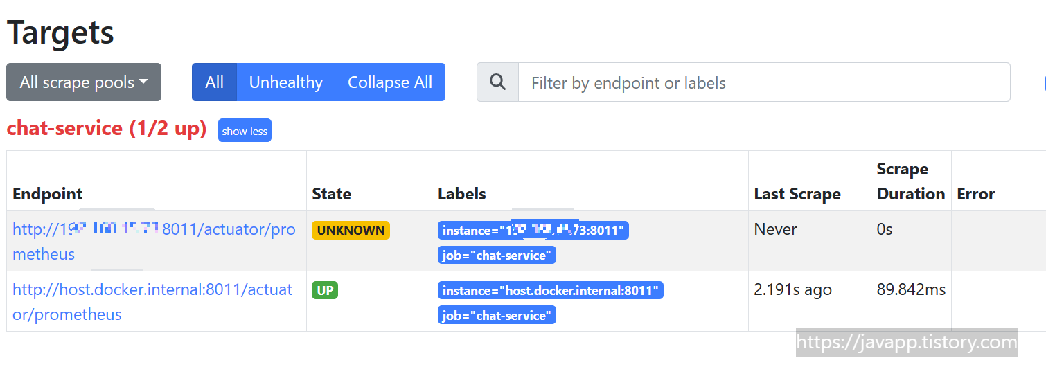 - targets: ['{내부ip}:8011']
