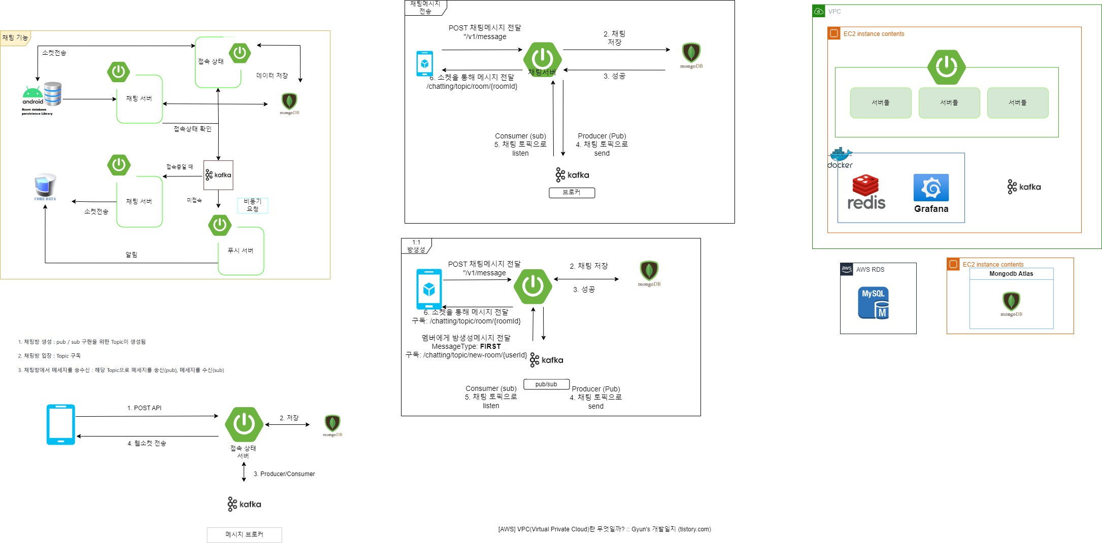 전체적으로 MSA구조로 인증,유저, 알림, 채팅, 접속상태 마이크로서비스가 있는데