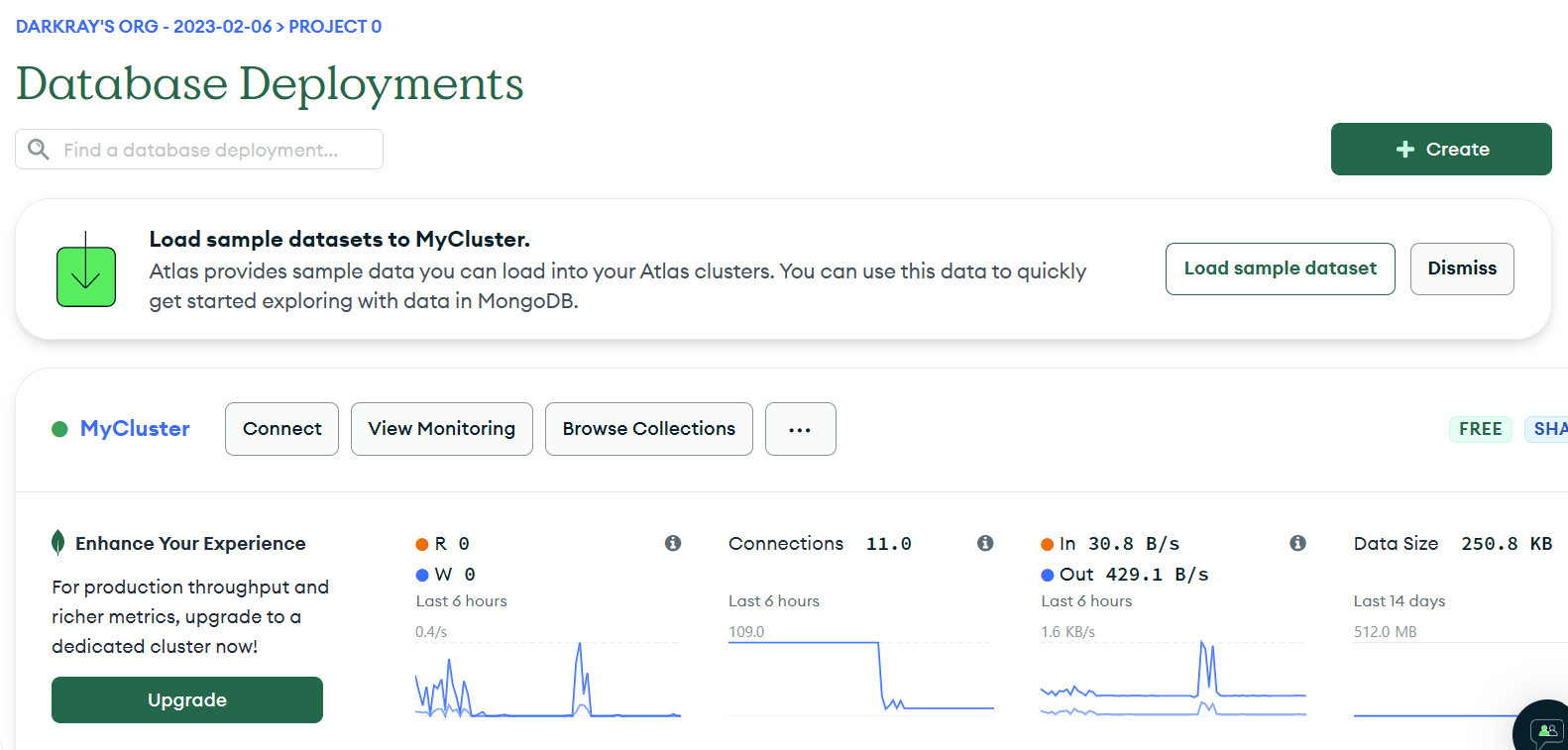 Atlas라는 클라우드 환경에 MongoDB와 연동하였습니다.