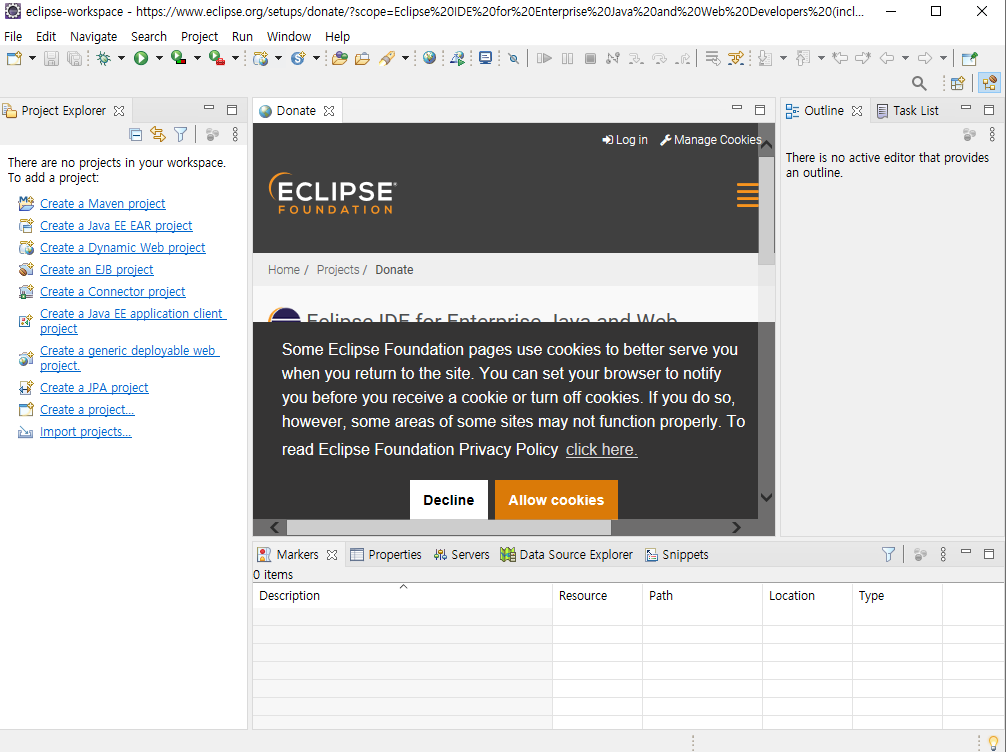 하나 스튜디오를 사용하기 위해 이클립스를 활용합니다.