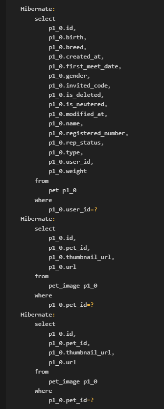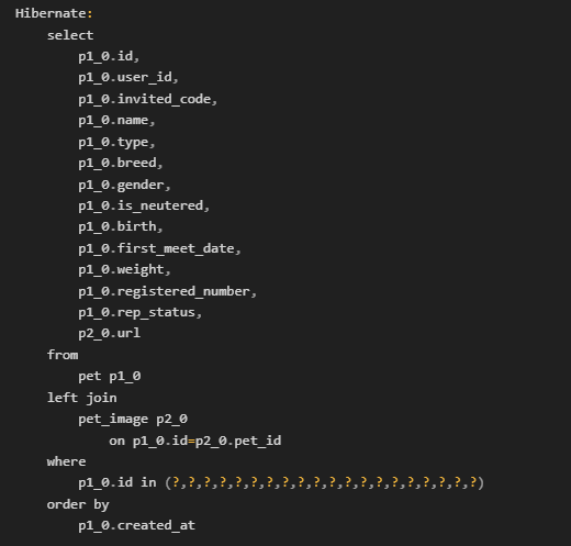 펫별로 반복적으로 pet Image table 조회 1 + N - 약 65~90ms