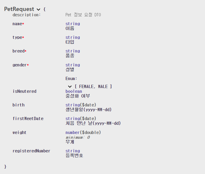 gender 의 경우 특정한 값만 요청되도록 설정되어있습니다.