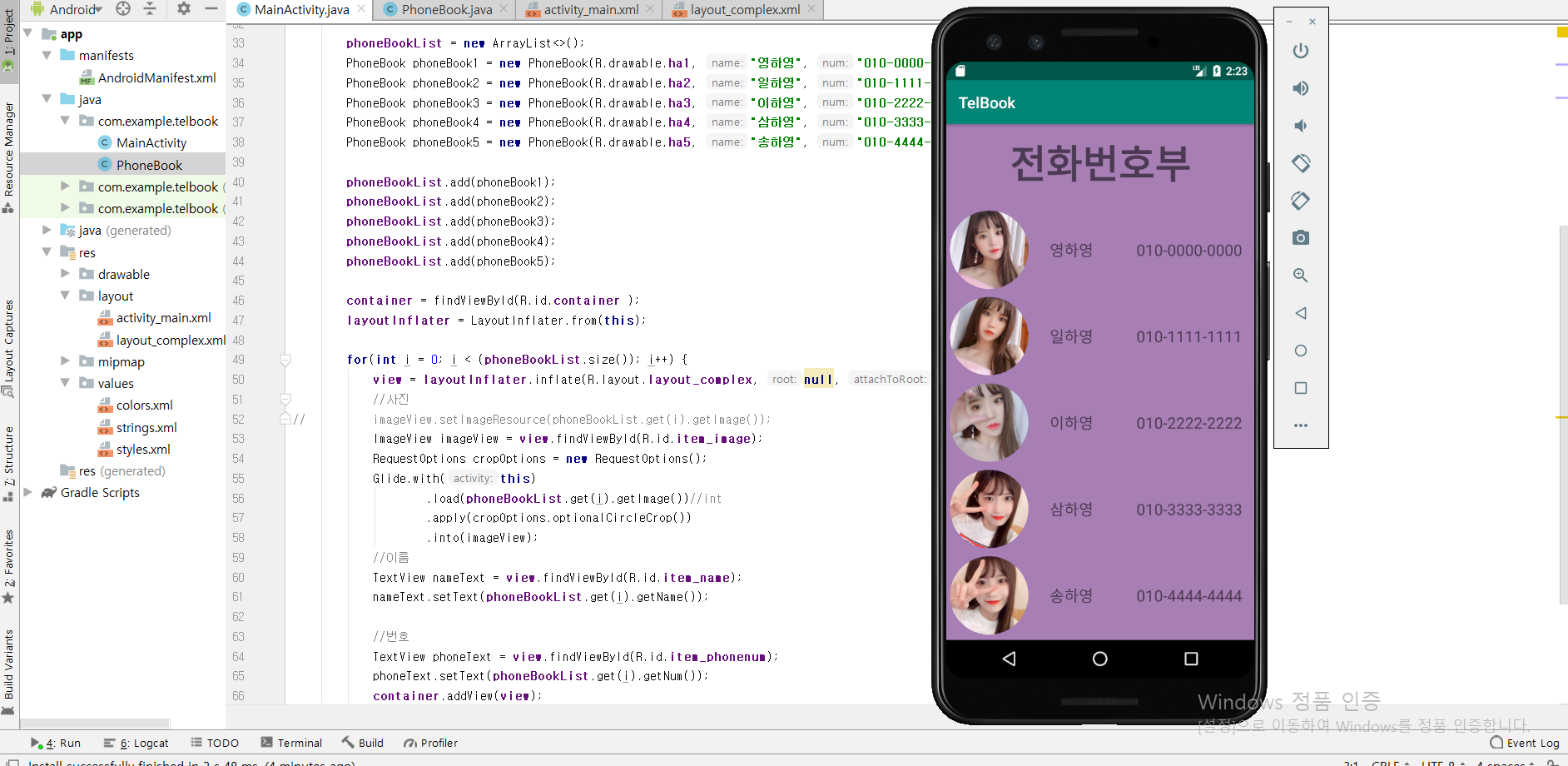 PhoneBook phoneBook1 = new PhoneBook(R.drawable.ha1, "영하영", "010-0000-0000");