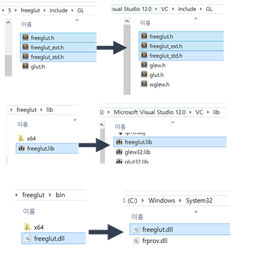 freeglut.dll -> C:\Windows\System32 및 ->C:\Windows\SysWOW64