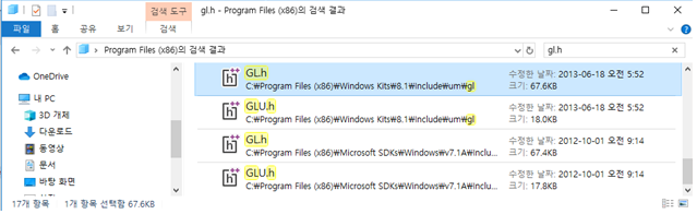 gl.h와 glu.h 파일은 보통 Visual Studio에 포함되어 있습니다.- Visual Studio 버전에 따라 다르겠지만 다음 그림 참조- 검색을 했는데 gl.h glu.h가 없는 경우 새로운 Visual Studio 설치가 가장 편리함