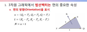 Ax + By + Cz + D = 0 à P, Q 가 속한 평면의 법선 벡터 = N (A,B,C)